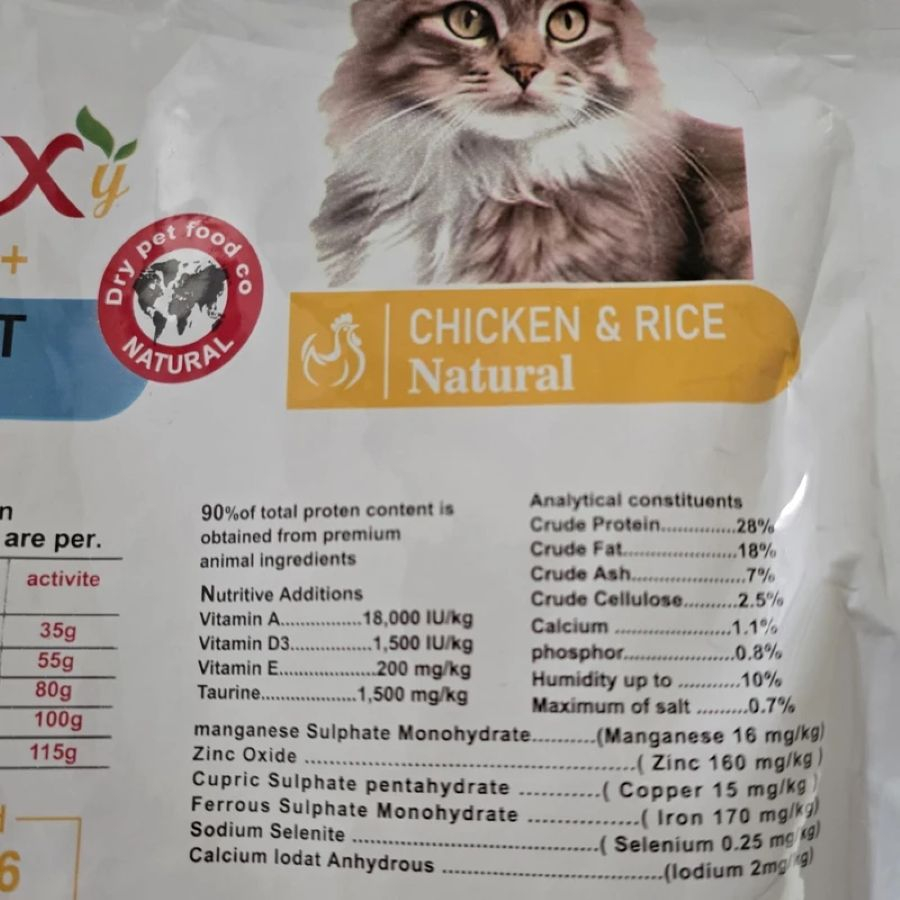 غذای خشک ریلکسی مخصوص گربه بالغ با مرغ و برنج یک محصول برای گربه های همه نژادها است که به گربه کمک می کند زندگی طولانی، سالمی داشته باشد. غذای خشک گربه بالغ ریلکسی، حاوی ترکیبی ویژه از مواد مغذی و ویتامین ها تشکیل شده است. غذای خشک گربه ریلکسی ۲ کیلویی با طعم مرغ و برنج دارای فرمولاسیون دقیق و کیفیت بالاست. این غذا سیستم ایمنی بدن گربه را تقویت می کند و روند رشد را بهینه می سازد. غذای خشک گربه ریلکسی دارای تورین است که سلامت بینایی و مغز گربه را بهبود می بخشد. غذای خشک گربه بالغ ریلکسی به طور ویژه برای تامین انرژی مورد نیاز گربه ها فرموله شده است. این غذا ساخته شده از مواد با کیفیت بالا و با هضم آسان است. تورین ضروری موجود در این غذا برای سلامت قلب و مواد معدنی متعادل برای حمایت از کلیه ها و مثانه مناسب می باشد. به جز پروتئین با کیفیت بالا برای عضلات لاغر، مجموعه ای از ویتامین E، امگا ۳ و -۶ نیز در این غذا وجود دارد. غذای خشک گربه بالغ ریلکسی حاوی تورین که برای سلامت قلب مفید بوده و به علاوه مواد معدنی متعادلی برای سلامت کلیه و مثانه را دارا می باشد. پروتئین با کیفیت بالا موجود در این محصول برای کمک به گربه بالغ جهت حفظ عضلات بدون چربی مفید است. ویتامین E در این غذای گربه ادالت ریلکسی سلامت پوست و پوشش گربه شما را حفظ می کند.