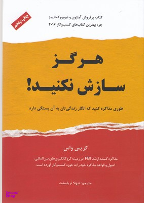 کتاب هرگز سازش نکنید، اثری نوشته ی کریس واس است که اولین بار در سال ۲۰۱۶ انتشار یافت. کریس واس پس از سال ها خدمت در نیروی پلیس شهر کانزاس به FBI پیوست و شغلش به عنوان مذاکره کننده در گروگان گیری ها، او را در مواجهه ای رو در رو با خلافکاران مختلف، از جمله سارقین بانک و تروریست ها، قرار داد. او به بالاترین سطح حرفه ی خود رسید و مذاکره کننده ی ارشد FBI در گروگان گیری های بین المللی شد. کتاب هرگز سازش نکنید، مخاطبین را وارد دنیای مذاکراتی حساس و پیچیده و البته وارد ذهن واس می کند و از مهارت هایی پرده برمی دارد که به او و همکارانش کمک کردند تا در مخاطره آمیزترین شرایط به موفقیت برسند و جان انسان ها را نجات دهند. واس در این راهنمای کاربردی و قابل فهم، از نه قاعده ی موثر در هنر مذاکره سخن می گوید؛ قواعدی که ما را قادر می سازند چه در زندگی شخصی و چه حرفه ای، بر دیگران تاثیرگذار باشیم و به هدف مطلوبمان برسیم.