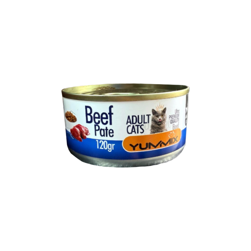 ۱ عدد کنسرو گربه بالغ یامیکس مدل پته با طعم گوشت گاو وزن ۱۲۰ گرم است.