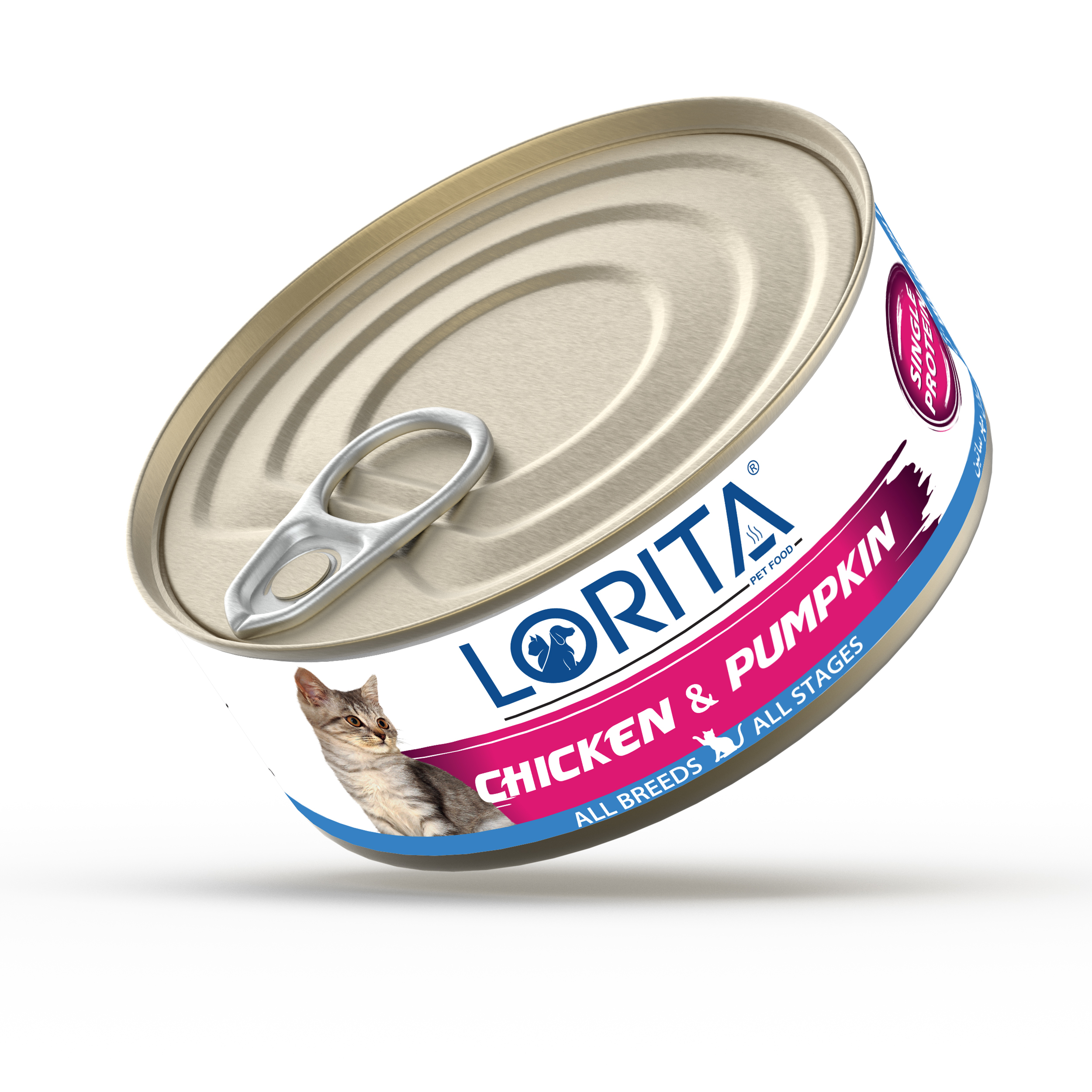 کنسرو غذای گربه مرغ و کدو حلوایی لوریتا مدل NATURAL CHICKEN & PUMPKIN ، فاقد هر گونه مواد نگهدارنده، مواد شیمیایی، مواد افزودنی یا رنگ و اسانس بوده و سرشار از سلنیوم، فسفر، نیاسین، ویتامین B6، ویتامین A، زینک، ویتامین C، پتاسیم و سایر مواد معدنی مورد نیاز برای گربه ها می باشد. محتویات این کنسرو فیله مرغ و تکه های کدو حلوایی بوده که از تازه ترین مواد اولیه تهیه شده، دارای بوی بسیار مطبوعی است و برای همه نژادهای گربه و در همه سنین مناسب می باشد. این محصول سرشار از پروتئین است و چربی بسیار کمی دارد. کدو حلوایی منبع خوبی از ویتامین C است که یک آنتی اکسیدان قوی میباشد، همچنین کدو حلوایی منبع غنی از مواد معدنی از جمله پتاسیم و روی است. پتاسیم به حفظ سلامتی مو حیوانات کمک می کند.