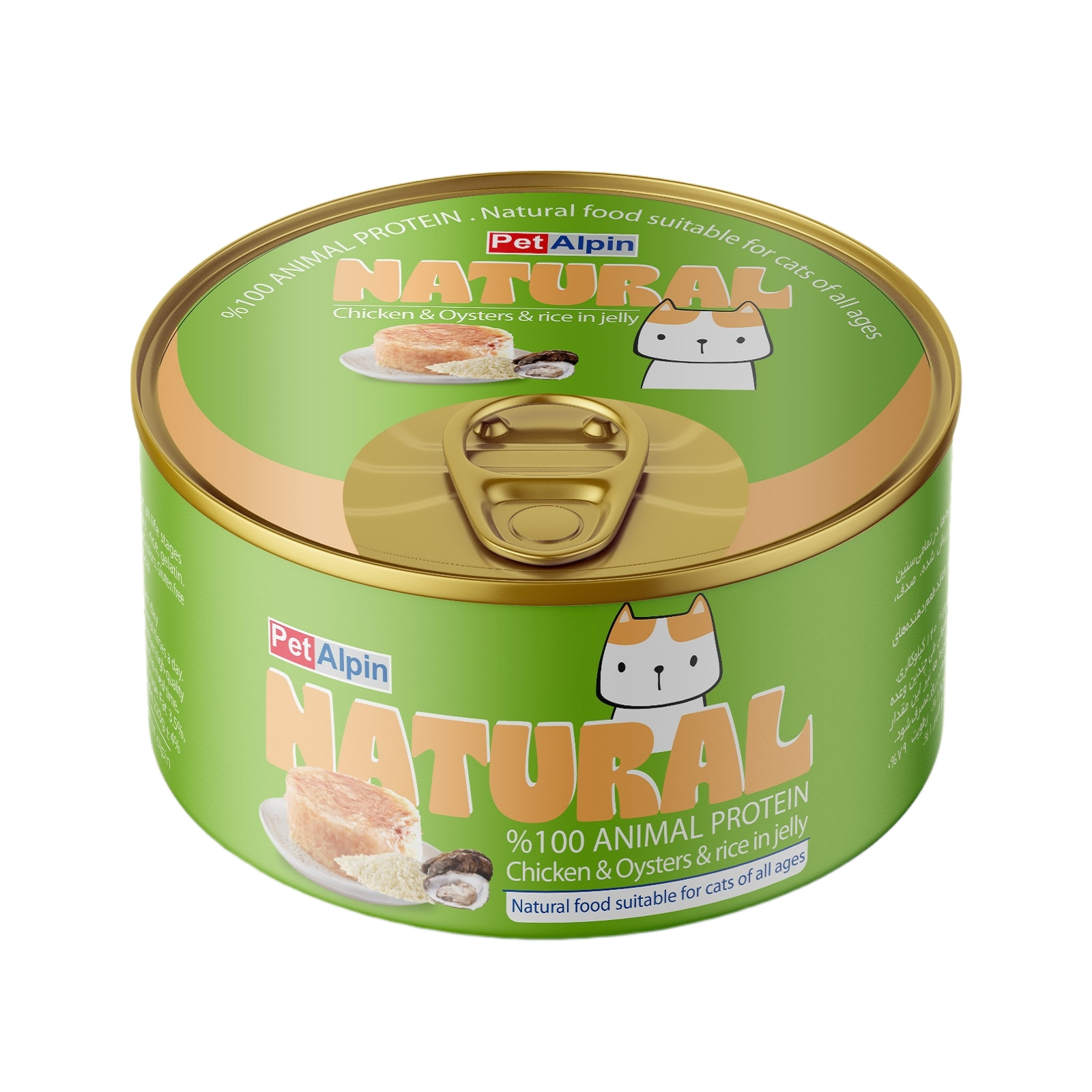 - سایر توضیحاتدارای مرغ و صدف در ژله مناسب گربه ها با تمامی سنین دارای تائورین برای تقویت قلب و بینایی جلوگیری از کم آبی بدن و هضمی آسان حاوی انواع ویتامین ها و مواد معدنی فاقد رنگ و طعم دهنده های مصنوعی